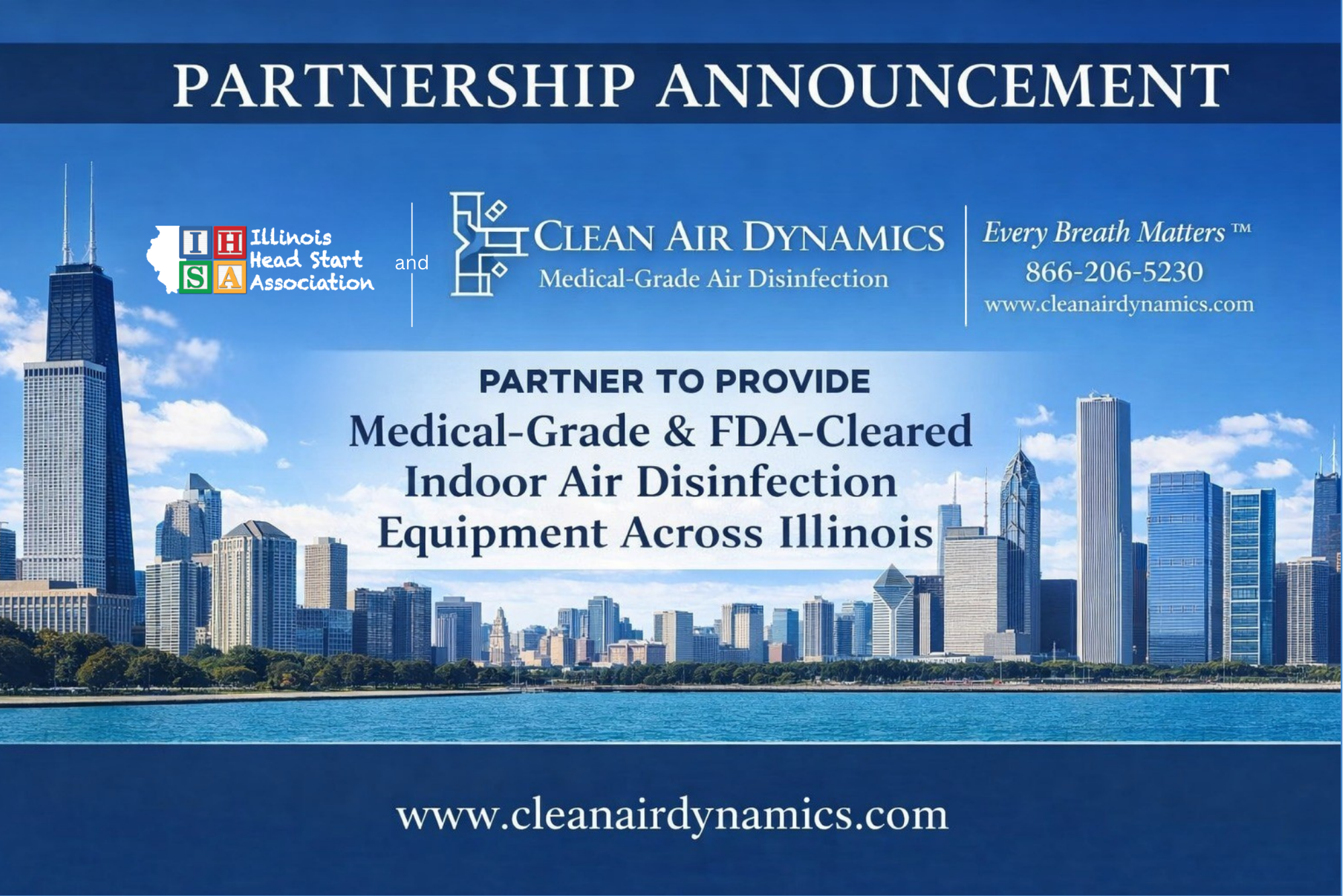 The Illinois Head Start Association (IHSA) is grateful for the support of our Corporate Partners! We are pleased to announce a new partnership with Clean Air Dynamics, LLC. The company, led by Raleigh Guice, President, provides access and consultation regarding indoor air disinfection and high-touch surface disinfection equipment.